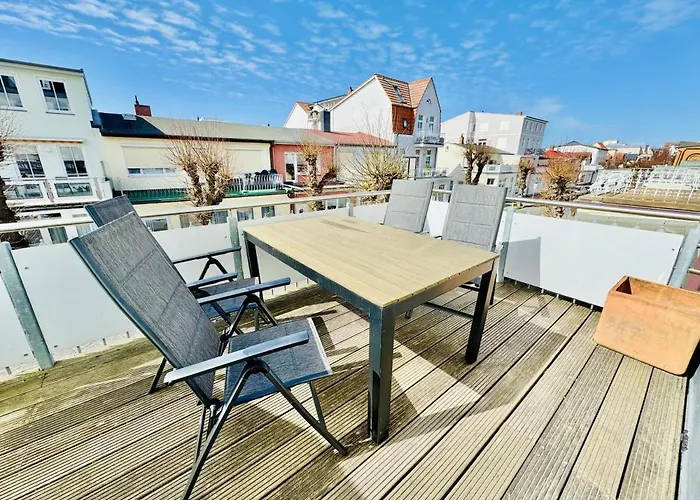 Diese 0-Zimmer-Apartments liegt in 4 Kilometer Entfernung vom Naturschutzgebiet Radelsee. Das Molenfeuer Warnemünde ist nur 20 Minuten Fußweg von diesem Apartment entfernt. Außerdem liegt das 85 m² große Apartment Seerose nicht weit entfernt vom Alte Strom.